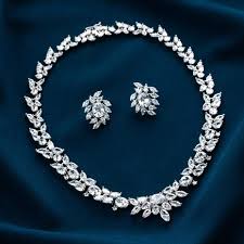 Shimmer is a modern diamond look necklace set with a delicate design and scintillating crystals. Crafted beautifully with marquise shaped Top quality Austrian crystals and finished with smoothest German Rhodium polish, the elegance and quality of this necklace set is unmatched.